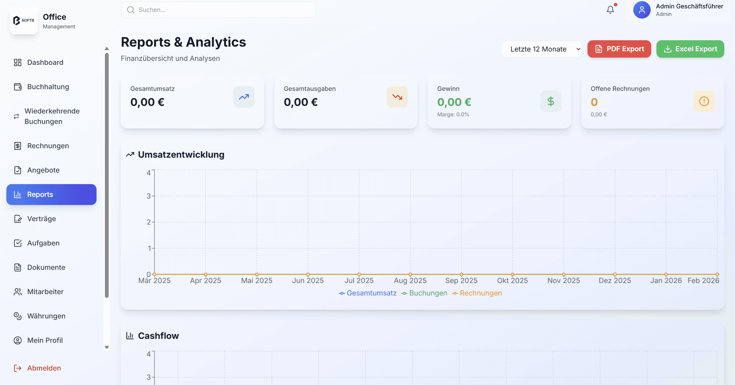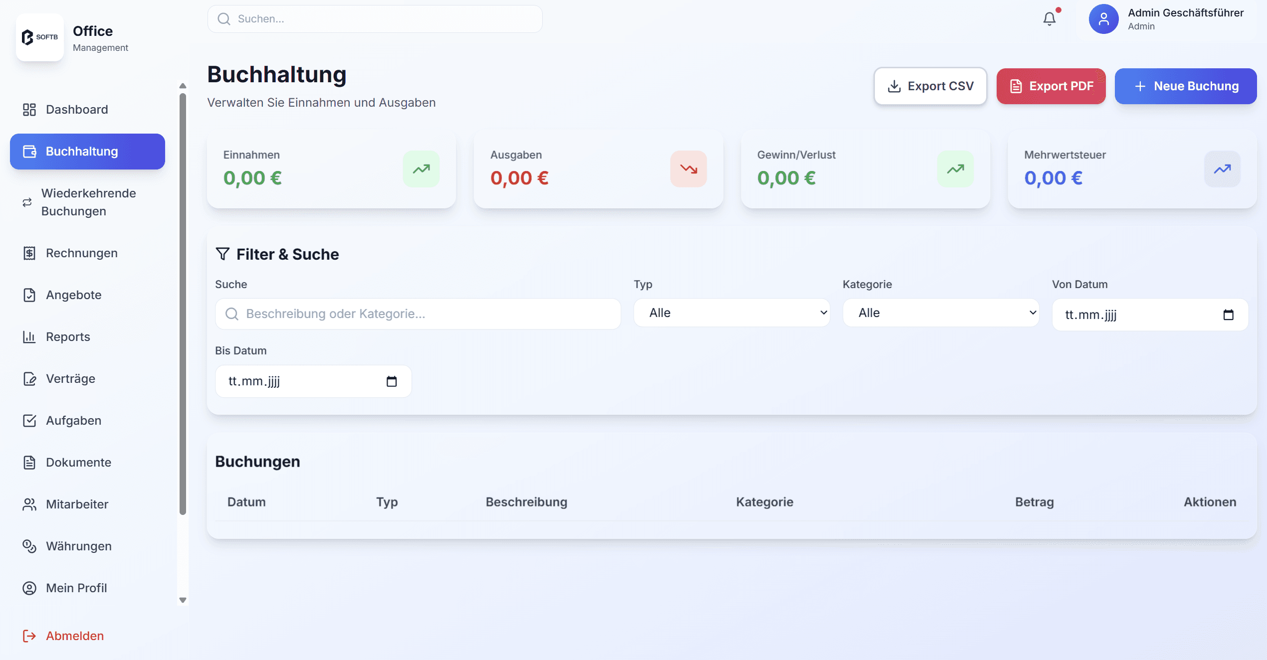 Antwort:Ja, Berichte, Buchungen und Dokumente können als CSV oder PDF exportiert werden.
